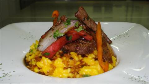 Yellow Chili risotto with pisco steak sauté