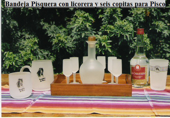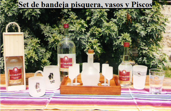 Set of liquor or Pisco tray, glasses and Pisco.
